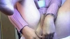 Ela é uma morena que tem uma coleção de vibrador e hoje ela usa os seus três favoritos para se fazer gozar em frente a câmera!