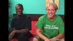 Aqui vemos um cara branco excitando seu amigo sugando pau dele e depois se inclina e leva o grande pau preto em seu rabo apertado!
