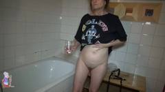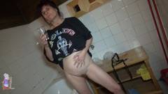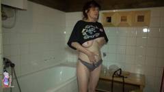 Vlasta e uma mulher madura que tem muita vontade de se masturbar em casa. Ela tira as calças e senta para se tocar com as mãos.