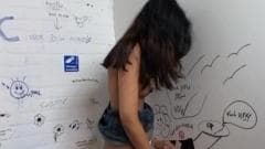 Esta mulher adora porra e ela fará de tudo para desfrutar deste pau que apareceu através da parede, ela chupa-o e depois fode-o.