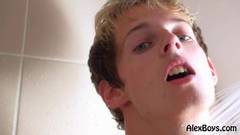 Esse cara é um Twink que não pode esperar para sentir prazer em seu pau e quando fica confortável no banho, ele pega seu pau e se masturba!