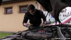 Esse cara tem ido visitar seu mecânico com a desculpa de que tem um barulho no motor do carro. Na verdade, ele quer foder com ele!