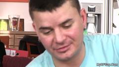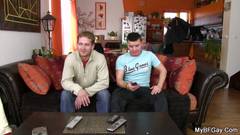 Nesta cena, vemos dois amigos gays juntos para uma boa cena de sexo anal e, em seguida, eles são apanhados por uma das suas esposas, não perca!