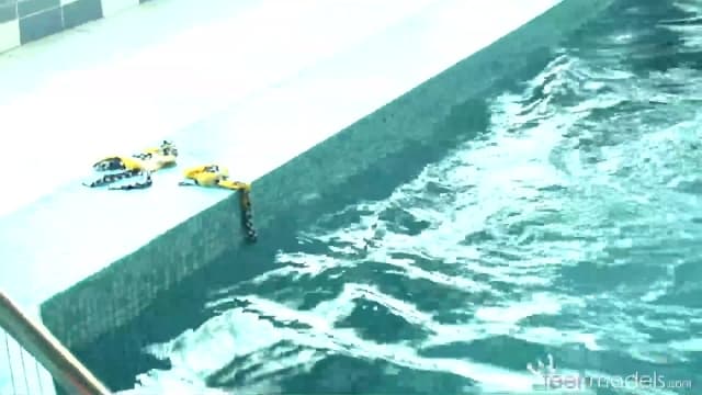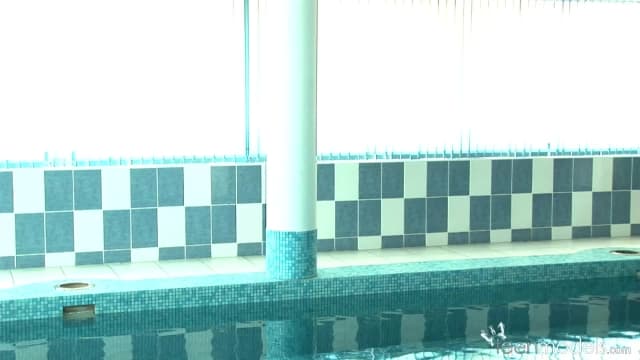 Esta bela morena vai experimentar o prazer de um orgasmo depois de nadar nua na piscina, ela sai para foder-se com um vibrador!