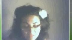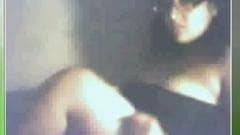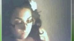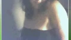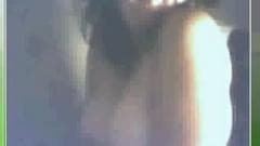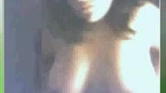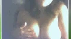 Esta bela morena tem uns seios enormes e quer mostra-los na webcam. Ela se exibe gravando esta cena amadora no computador.