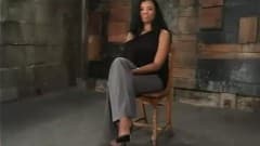 Esta jovem negra é amarrada e recebe um castigo desta jovem morena branca dominadora.