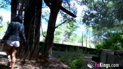 Esta puta ficou com vontade de gozar com o namorado ao ar livre, aproveitando para fazer tudo o necessário para ter uma boa sessão sexual.