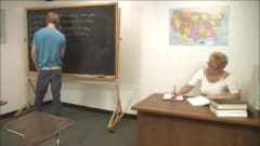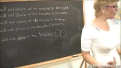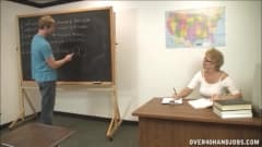 Esta professora é uma velha loira gostosa que sabe muito bem o que seus alunos precisam como recompensa por ter estado bem na escola.