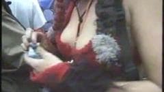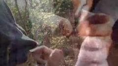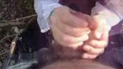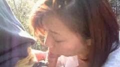 É mesmo em pleno exterior que esta safada se agarra ao pénis do seu companheiro para lhe fazer um broche em plena festa !