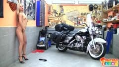 Bela jovem loira que se divertem em plena garagem ao se acariciar o corpo ! Um puro momento de felicidade a não perder !