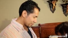 Aqui está uma bela mulher grande seduzindo o seu homem num quarto de hotel para que eles possam desfrutar de uma sessão quente de sexo juntos,!
