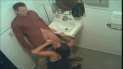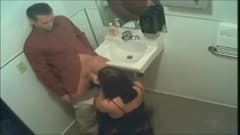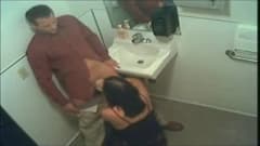 Esta morena quer sugar o pau de um homem, mas não sabe como, então esse cara leva-a ao banheiro público para um bom boquete!