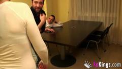 Você vai ver uma puta espanhola morena que sabe muito bem como dar prazer a estes dois homens com o seu belo corpo nú.