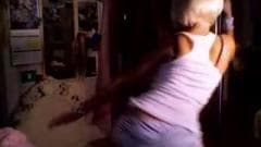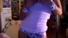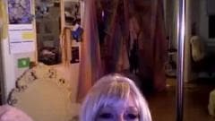 Esta loira tesuda trabalha num club de strippers e durante o dia pratica em casa de frente a webcam para você poder apreciar.