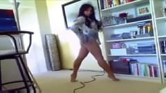 Esta morena sexy está dançando de roupa interior em casa. Em seguida, ela tira tudo isso para nos mostrar sua bela buceta e peitos empinados.