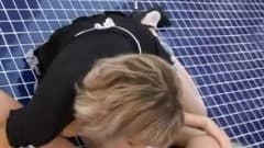Uma empregada lambendo buceta da sua amante na piscina