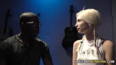 Esta loira pensava que estaria num estúdio de musica gravando seu disco mas os produtores mudaram de opinião e querem transar com ela.