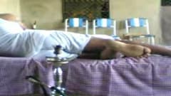 Este casal vai ficar completamente relaxado depois de fumar uma chicha. Ela tira a roupa e vaia par ao sofá para transar com este negro.
