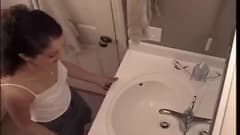 Esta jovem morena só tem tempo para ela quando está no banheiro e é por isso que seu amigo instalou uma câmera para espioná-la!
