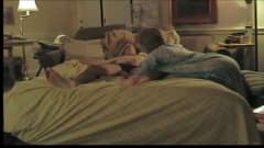 Um vídeo caseiro antigo filmado com uma única câmera onde uma mulher provoca um cara que está amarrado e com os olhos vendados!