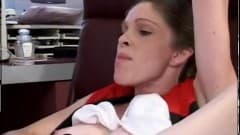 Uma jovem morena engole tudo o que o treinador lhe oferece. Aqui ela é fodida com força em sua jovem garganta inocente.
