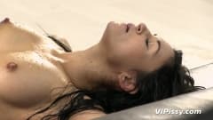 Esta morena é simplesmente deliciosa e vai adorar sentir o calor do mijo a lhe percorrer o corpo ! Ela é uma porca mas adoramos a sentir !