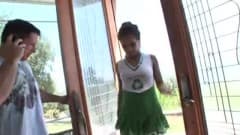 Temos aqui uma lider de torcida. Ela vai se divertir com a verga do treinador.