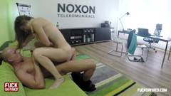 Esta morena gostosa nem recusa nada ao seu chefe, ele gosta de beijar e é muito bom para o seu contrato ! Ela vai divertir-se imenso no Boafoda.