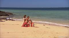 Estas duas prostitutas fazem sexo ao ar livre na praia, um homem veio para resgatá-las! espero que goste de as ver assim em plena açao.