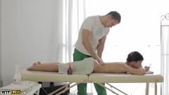 Uma morena com um massagista pervertido