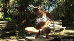 Andrea Mel gosta de se masturbar sozinha enquanto está ao ar livre no jardim e hoje você vai gostar de vê-la fazendo strip e ficar com tesão!