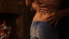 Depois do jantar, este casal se fode na mesa em frente ao fogo. Eles realmente ficam loucos e têm uma bela cena.