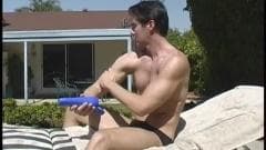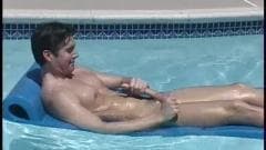 Que esteja deitado na espreguiçadeira, num colchão na piscina, na cama ou no banho este homem não para de masturbar-se ! é bom vê-lo porque é sexy.