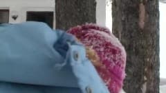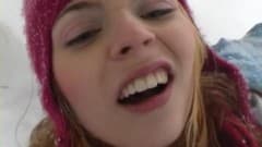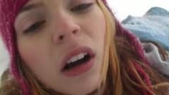 Esta menina que está na neve vai marcar uma pausa para masturbar-se.