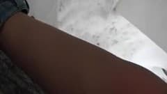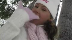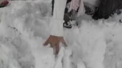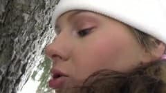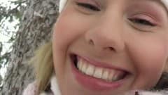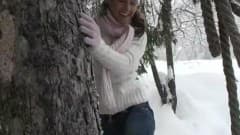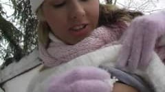 Esta bela loira quer provar que é capaz de derreter a neve com o calor da sua buceta. Ela se masturba ao ar livre num lugar muito frio.