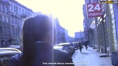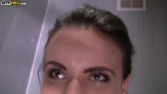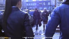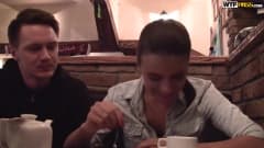 Esta morena sensual está sentada a tomar um café quando entretanto homens chegam para se meter com ela e vão leva-la para a casa de banho.