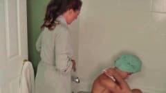Esta morena sabe como ele gosta de desfrutar do banho, com um bom boquete. Ela suga tão bem que ela faz ele ejacular facilmente.