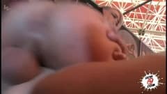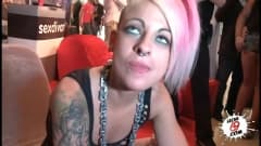 Esta loira emo está preparada para mostrar numa exposição sexual como é boa a chupar rola a um cara em publico.