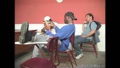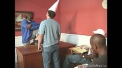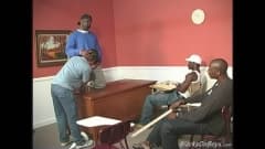 Esta cena tem lugar no escritório e esses três caras pretos vão aproveitar ao máximo esse rabo apertado branco, não perca!