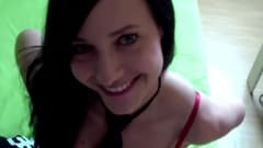 Depois de colocar o pênis de seu amante em sua vagina apertada, esta morena quer que ele esvazia suas bolas no seu rosto bonito. Não perca!