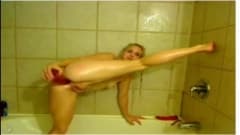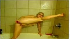 ![A puta senta-se no seu dildo duro e fica excitada. A puta senta-se no seu dildo duro e fica excitada.]()