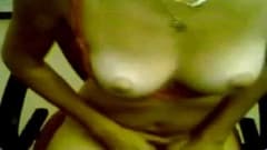 Uma amadora quente que vai acariciar as suas formas! Seios bonitos e buceta lisa que ela nos mostra em frente a webcam!