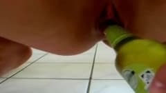 Um pouco especial esta amadora! Hoje, ela enfia uma garrafa de cerveja gelada na vulva! Uma masturbação feminina a não perder!