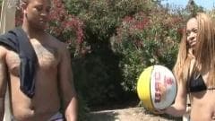 Esta bela jogadora de basquete negra perdeu o um contra um, e é forçada a cuidar deste belo pau que vai explodir sua vagina!