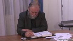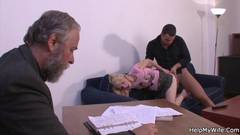 Esta loira convidou o namorado a casa do tio e como este ultimo tem muito trabalho, o casalo aproveita para fazer sexo no sofá a apenas 3 metros dele.