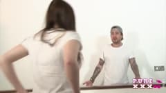Depois de surpreender Amber Nevada a masturbar-se no sofá, Luke Hotrod vai transar com ela profundamente com o sua grande rola