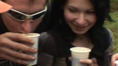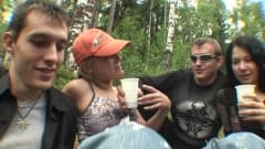 Este grupo de jovems gosta de se reunir regularmente para uma bebida na floresta e para desfrutar de uma boa sesao de sexo em grupo!