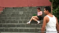 Quando este garanhao tira a sua grande rola, a bela transexual Patricia Sabat começa a sugar antes de ser fodida profundamente.