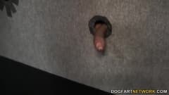 Uma loira gostosa chupando pau num gloryhole