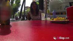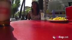 Esta bonita morena se apaixonou por este guitarrista e suga o seu grande pau muito duro antes de ser fodida de forma ben profunda.